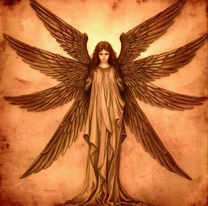 Estaríamos hablando de una representación muy conceptual de lo que entendemos por un ángel. Donde todo es mirado para el mayor bien, para seguir enarbolando la justicia divina y el orden en todo el universo.