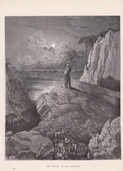 Gustav Doré realizó este grabado en 1870, » El ermitaño en la montaña».